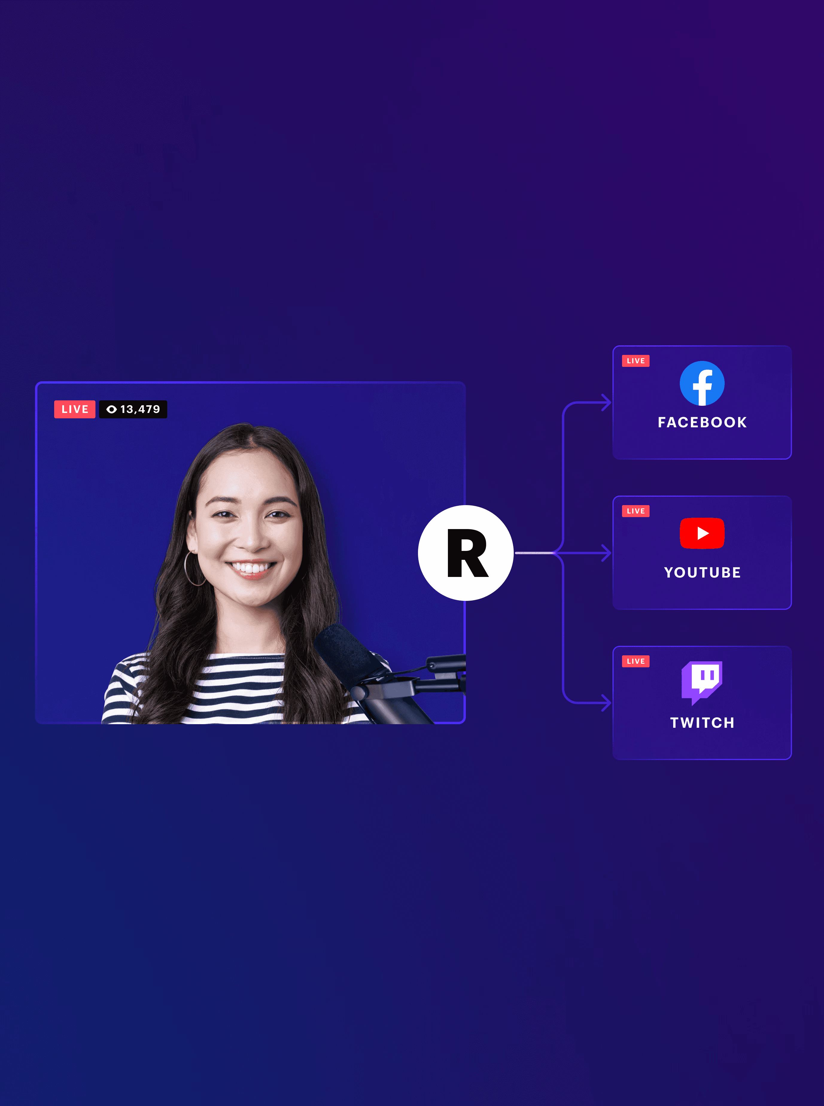 Simulcast your live stream on all your social platforms like YouTube, Facebook, Twitch, Kick and more.